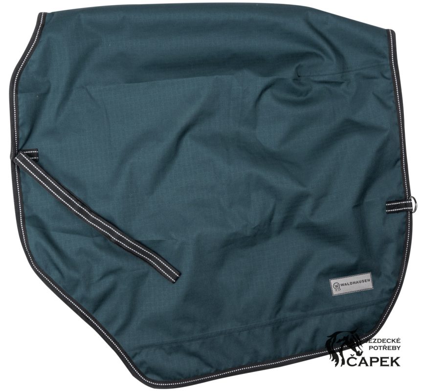 Nepromokavá bederní deka Salzburg chrání koně při jízdě v dešti a zároveň zajišťuje viditelnost i komfort.