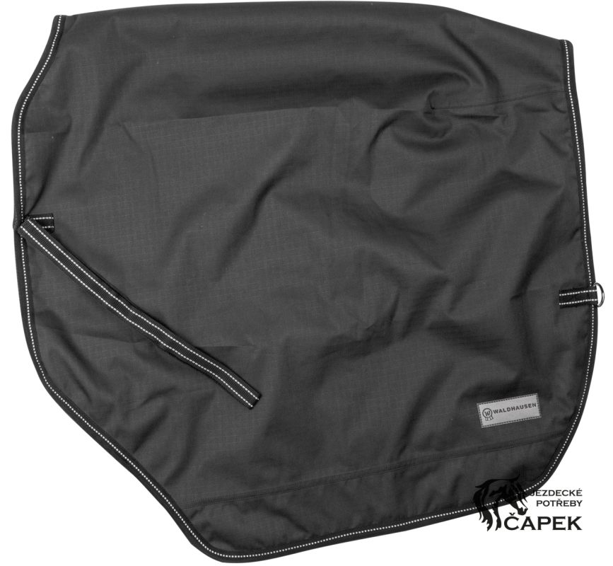 Nepromokavá bederní deka Salzburg chrání koně při jízdě v dešti a zároveň zajišťuje viditelnost i komfort.