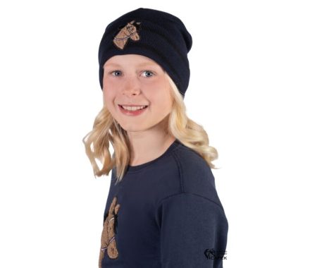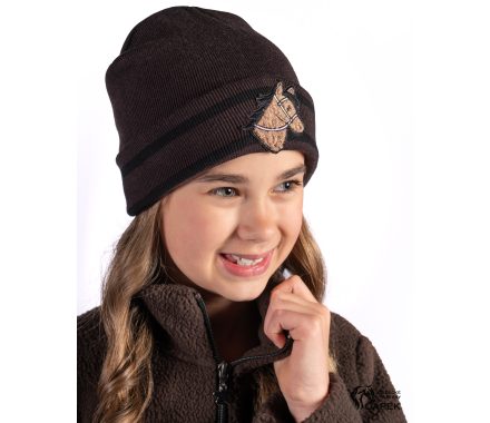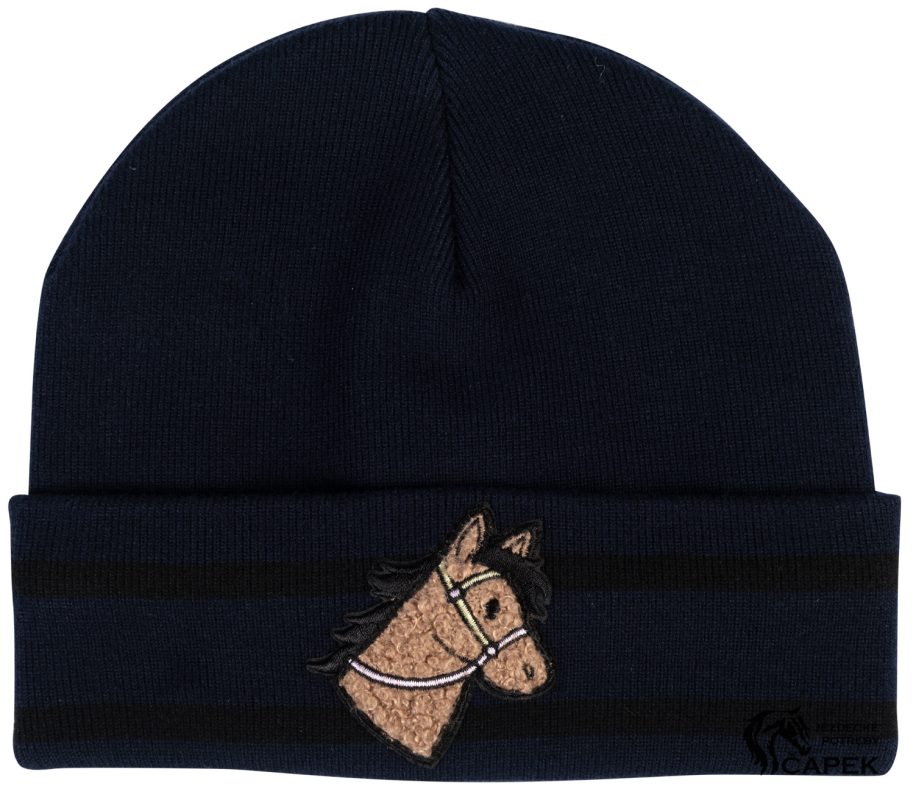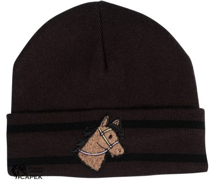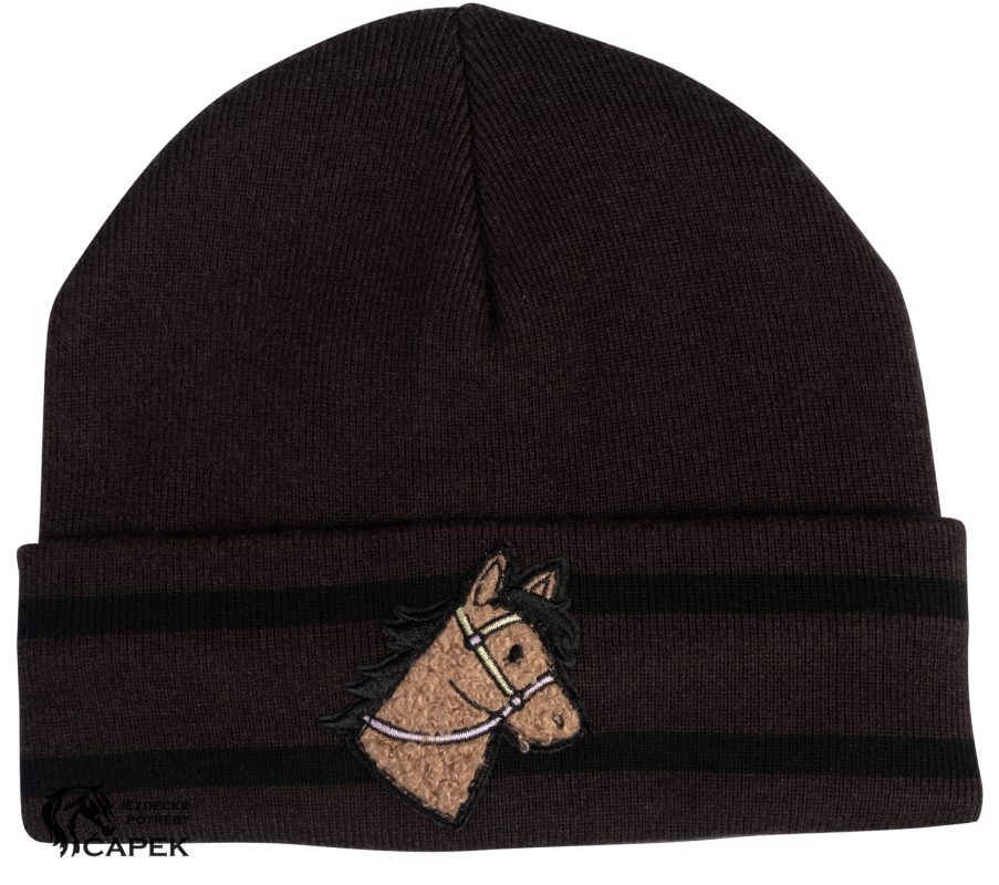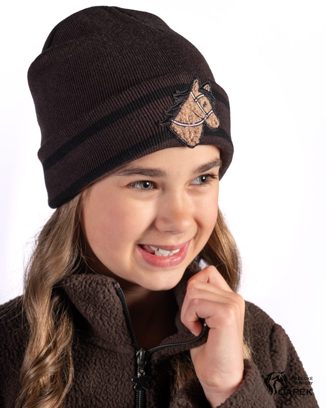Teplá a měkká dětská čepice s fleecovou podšívkou a roztomilou aplikací koníka.