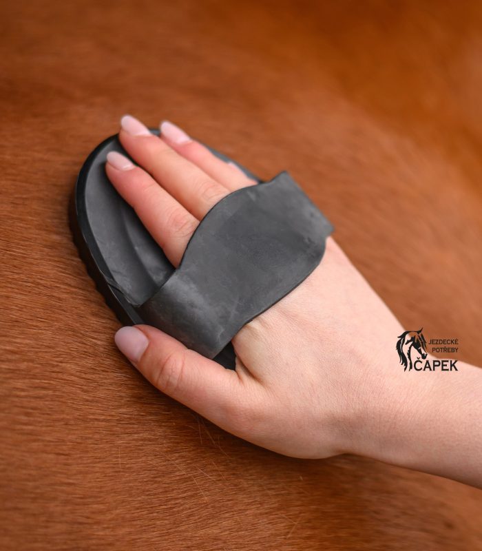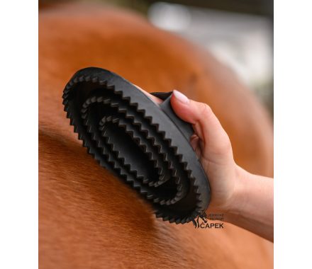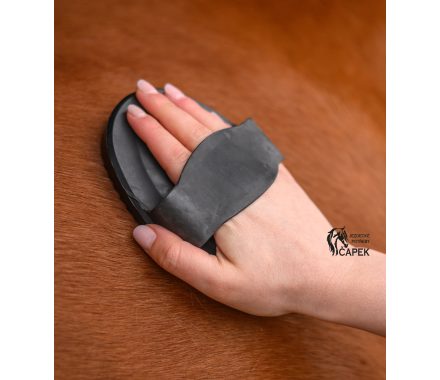 Gumové hříblko vhodné na čištění hrubých nečistot ze srsti koně.