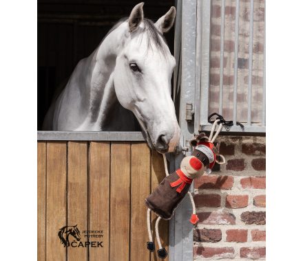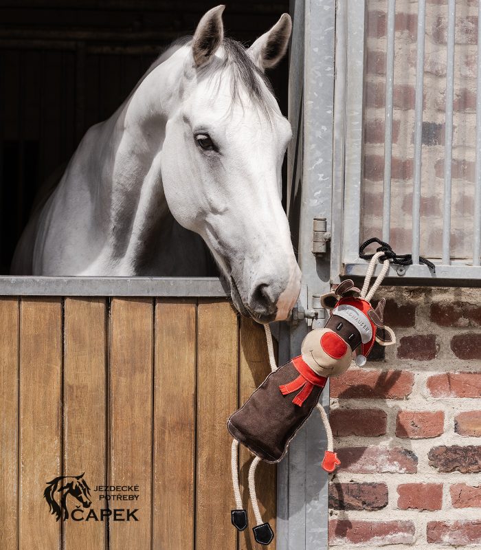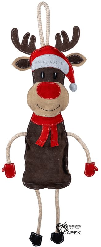 Hračka pro koně sob Rudi od značky Waldhausen zaujme svým roztomilým designem a pomáhá proti nudě ve stáji. P zavěsit.