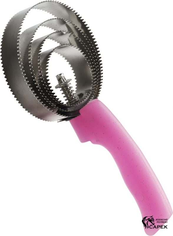 Spirálové kovové hřbílko s rukojetí zdobenou třpytkami.