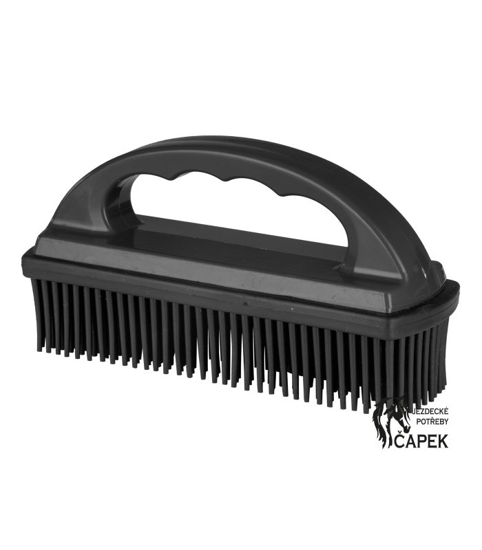 Odstraňovač chlupů domácích mazlíčků s gumovými štětinami a praktickou rukojetí.