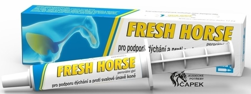 Perorální gel pro podporu dýchání a proti svalové únavě koně.