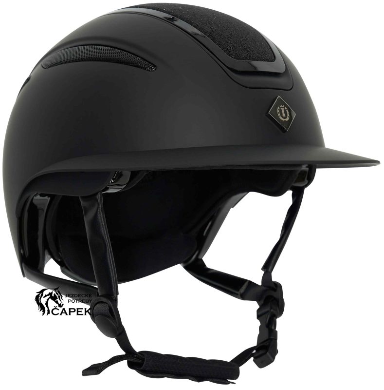 Nastavitelná jezdecká přilba v lehké skořepině z pevného ABS materiálu.