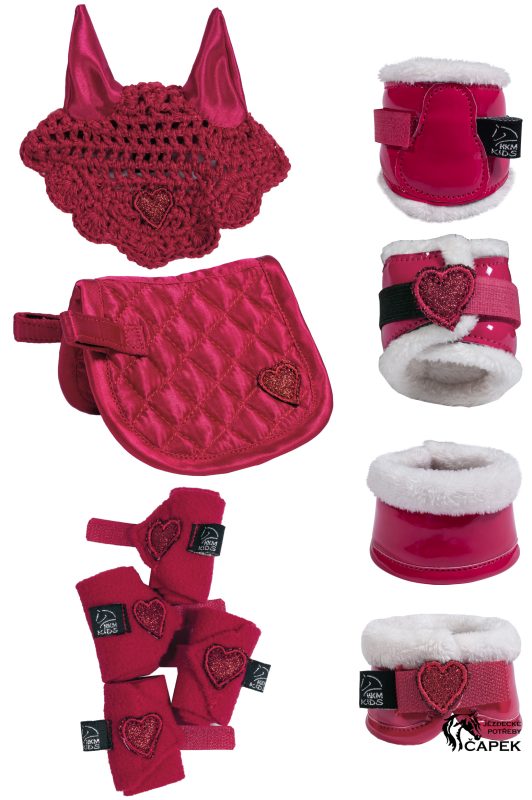 - jezdecký set skládající se z: podsedlové dečky, náušníků, bandáží, kamaší a zvonů na ochranu kopyt