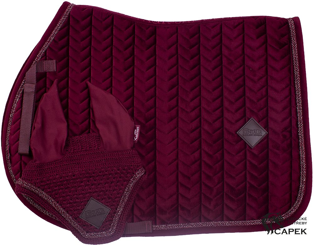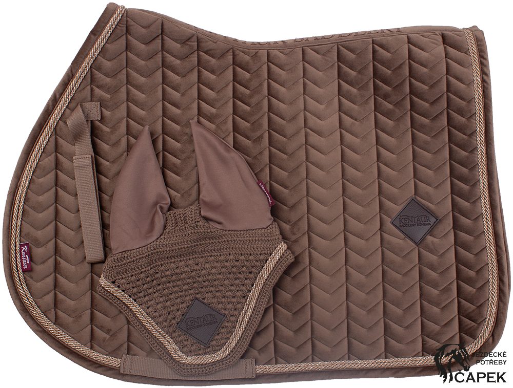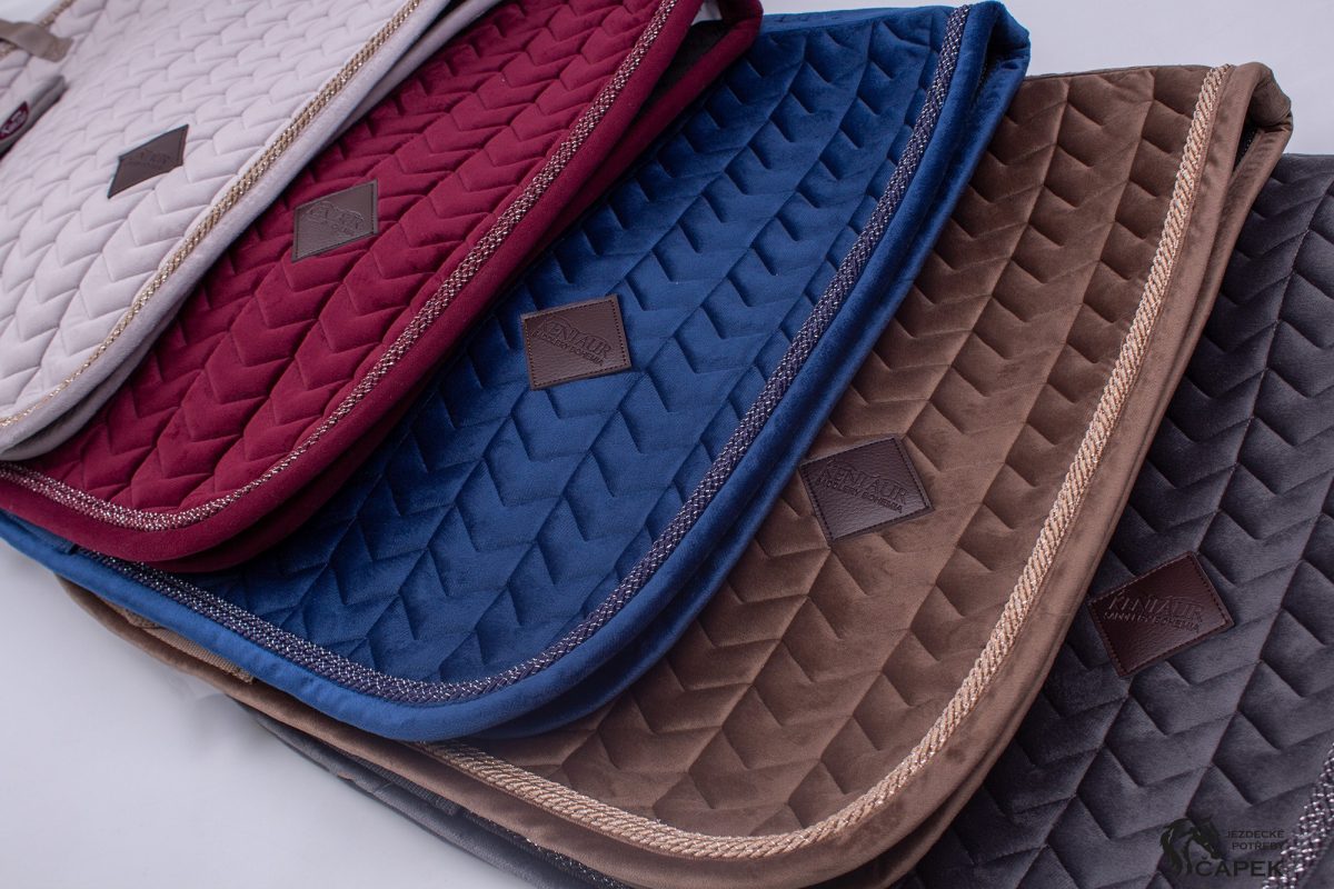 Podsedlová dečka s náušníky v nádherném sametovém vzhledu s 2 ozdobnými kroucenými šňůrky