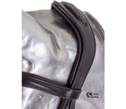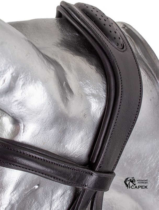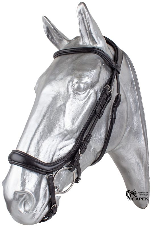 Speciální anatomická celokožená uzdečka s tvarovaným nánosníkem.