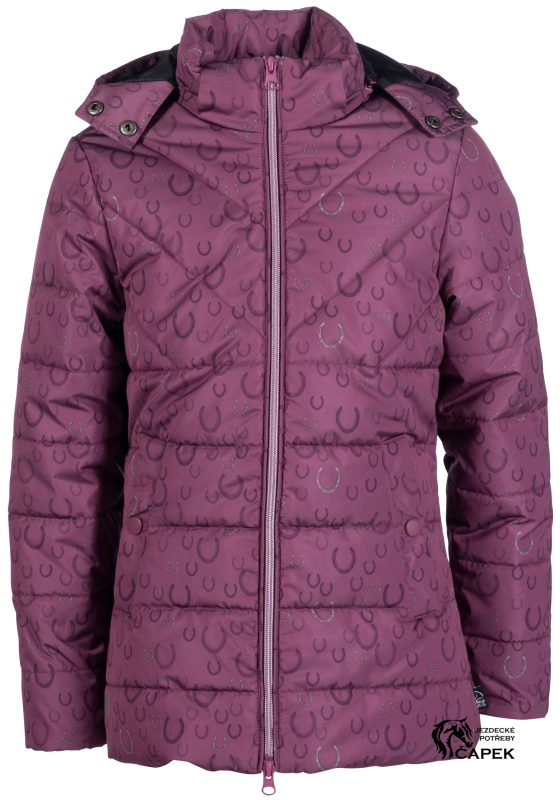 Dětský zimní kabát s zajímavým potiskem podkoviček.